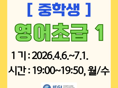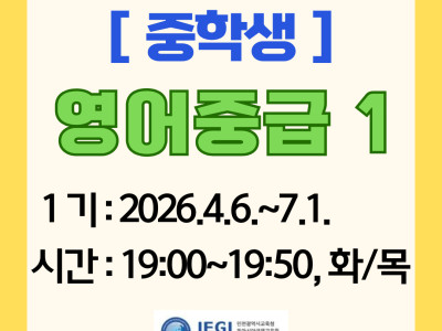 2026-다배움학교-[중학생]-영어중급 1 | 2026-04-06 ~ 2026-07-05 | 코스 보기 |