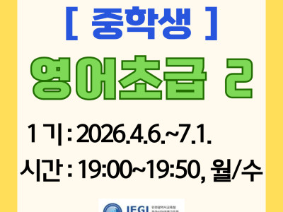 2026-다배움학교-[중학생]-영어초급 2 | 2026-04-06 ~ 2026-07-05 | 코스 보기 |