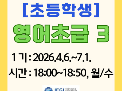 2026-다배움학교-[초등학생]-영어초급 3 | 2026-04-06 ~ 2026-07-05 | 코스 보기 |