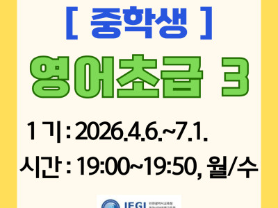 2026-다배움학교-[중학생]-영어초급 3 | 2026-04-06 ~ 2026-07-05 | 코스 보기 |