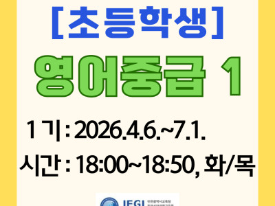2026-다배움학교-[초등학생]-영어중급 1 | 2026-04-06 ~ 2026-07-05 | 코스 보기 |