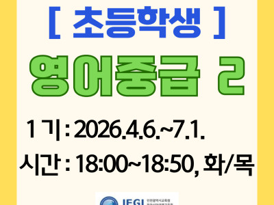 2026-다배움학교-[초등학생]-영어중급 2 | 2026-04-06 ~ 2026-07-05 | 코스 보기 |
